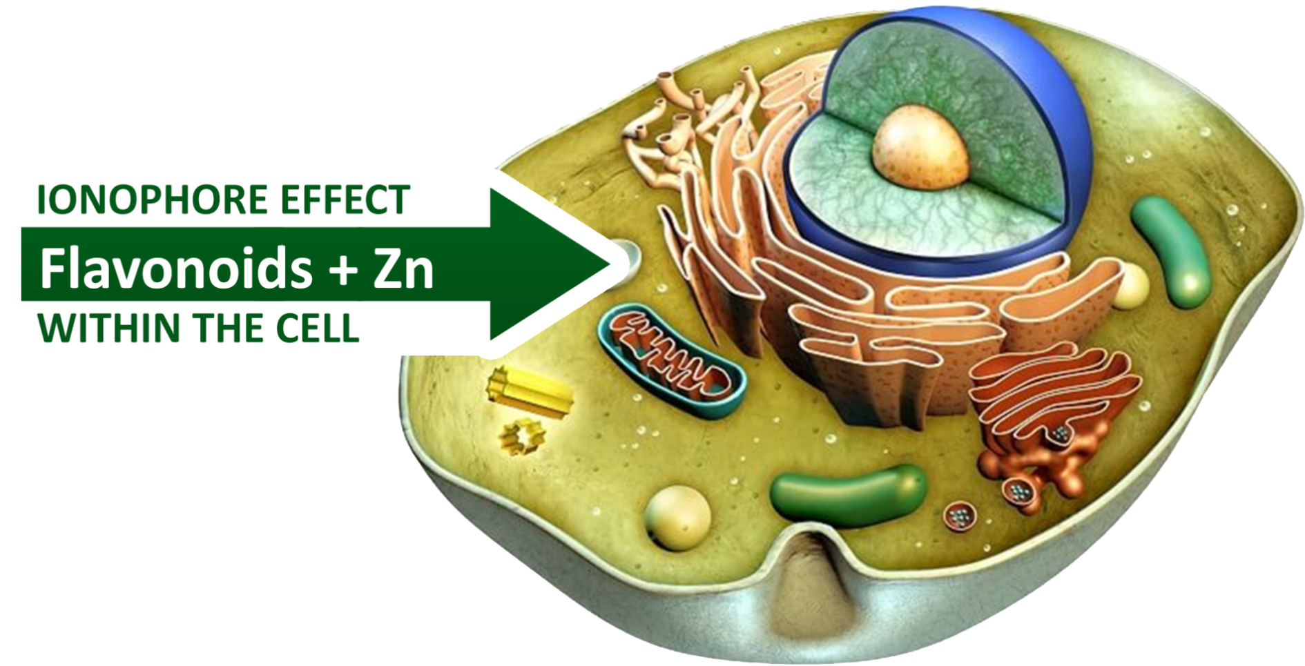 Ionophore zinc replenishment, antiviral effect within the cells.