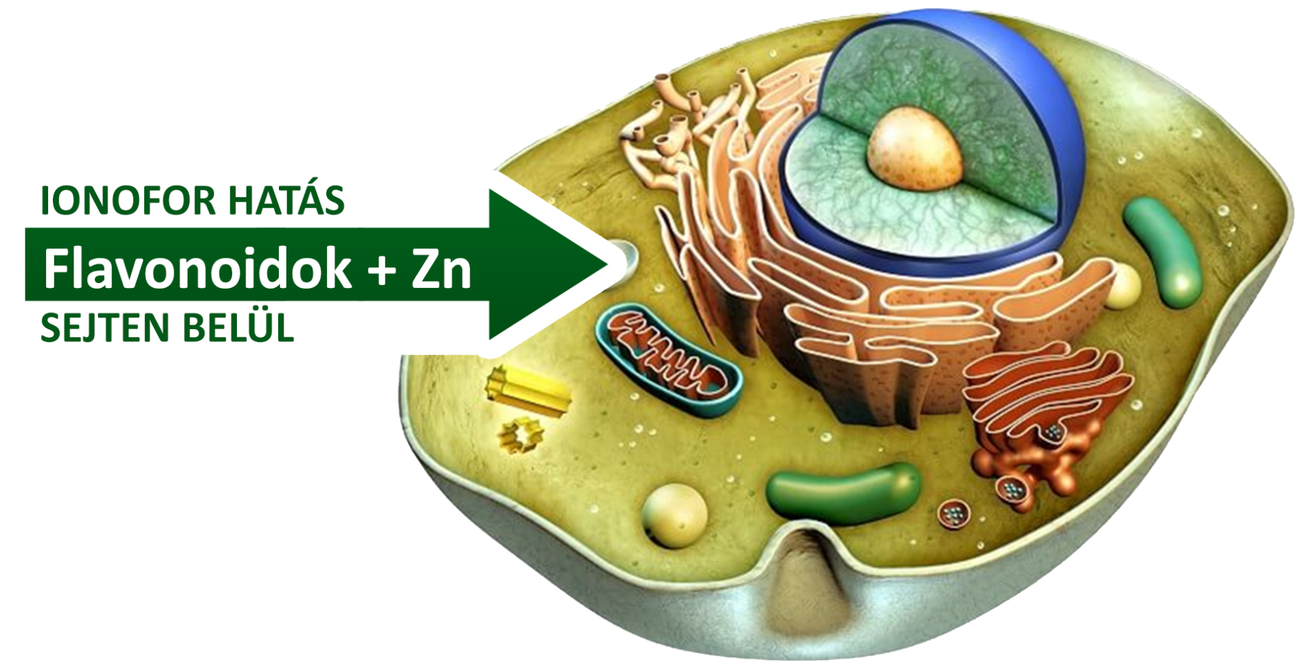 Az IONOFORCE TECHNOLÓGIA használatával a cink antivirális elemként hasznosul, mivel a egyedi módon a quercetin és más flavonoidok segítségével hatol át a kettős lipidréteggel rendelkező sejthártyán. Ennek köszönhetően a sejten belül a virusok szaporodásért felelős enzimek működését képes leállítani.